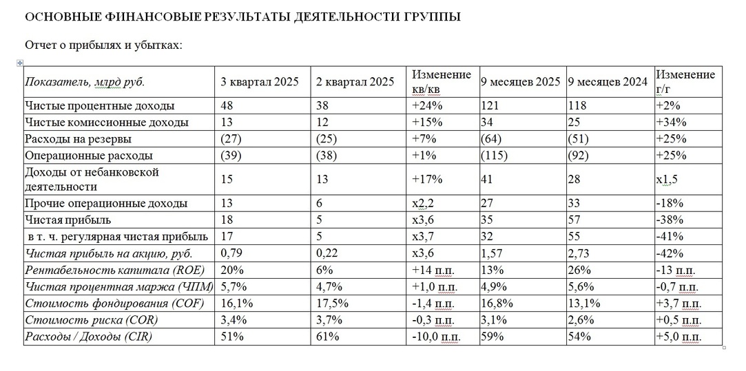 ПАО «Совкомбанк» (тикер: SVCB) опубликовал консолидированную финансовую отчетность по МСФО за 3 квартал и 9 месяцев 2025 года.