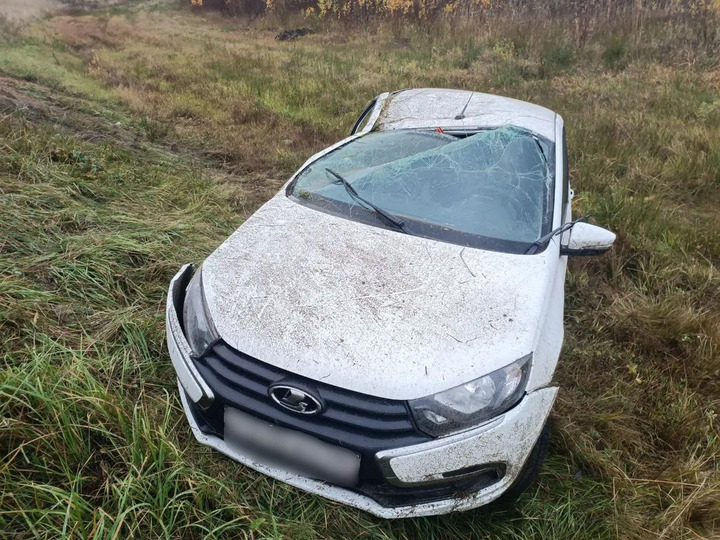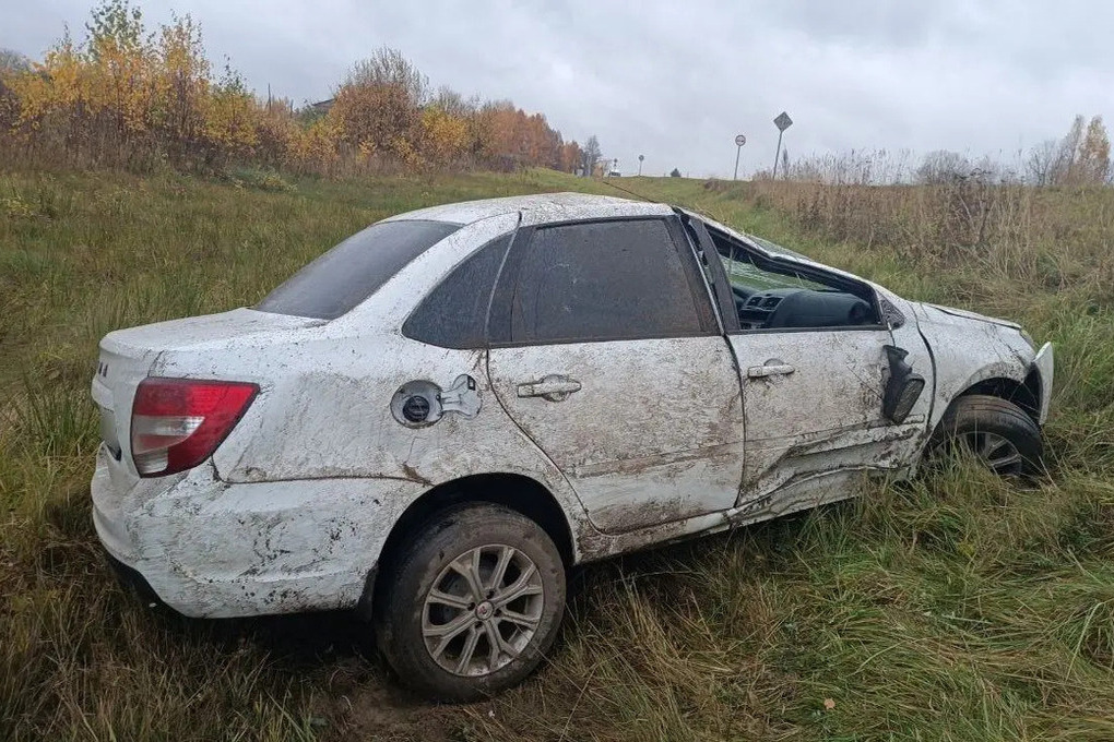 При попадании в кювет «Лада Гранта» опрокинулась, в результате чего находившийся в ее салоне 20-летний пассажир получил серьезные травмы, потребовавшие его госпитализации.