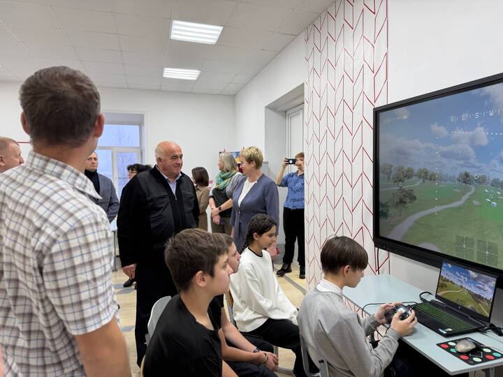 Директор школы Светлана Баранова сообщила Сергею Ситникову, что сейчас в классах установлено современное интерактивное оборудование, проекторы и ноутбуки, на которых ребята занимаются освоением робототехники и учатся управлять беспилотными летательными аппаратами..