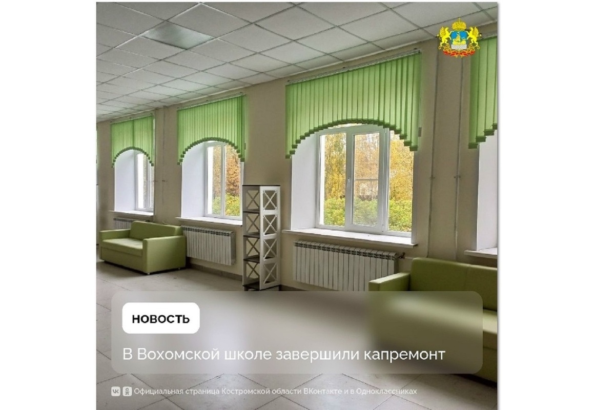 Вохомская школа предстанет перед своими воспитанниками в обновленном виде после завершения ремонтных работ, отличаясь светлым и современным обликом.