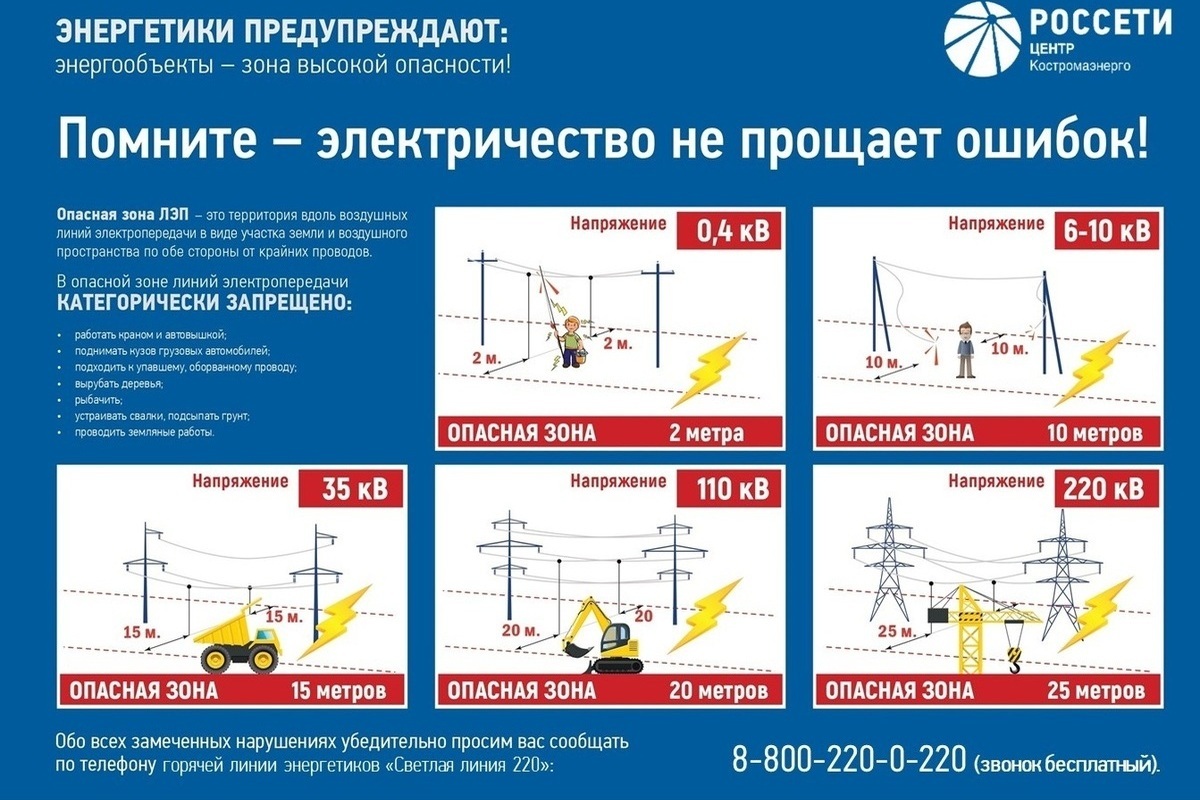 Филиал ПАО «Россети Центр» - «Костромаэнерго» напоминает жителям Костромской области о недопустимости нарушения охранных зон ВЛ и их последствиях, в целях обеспечения безопасности и надежной работы электросетевого комплекса.