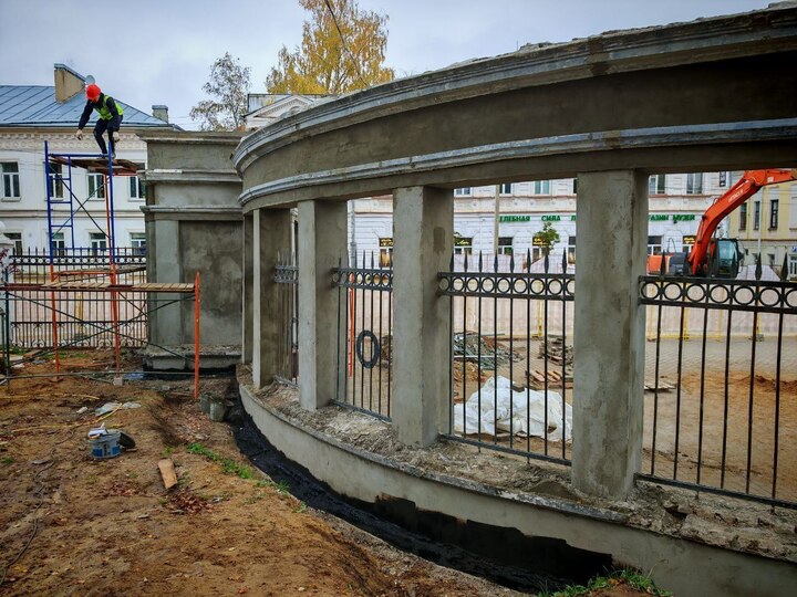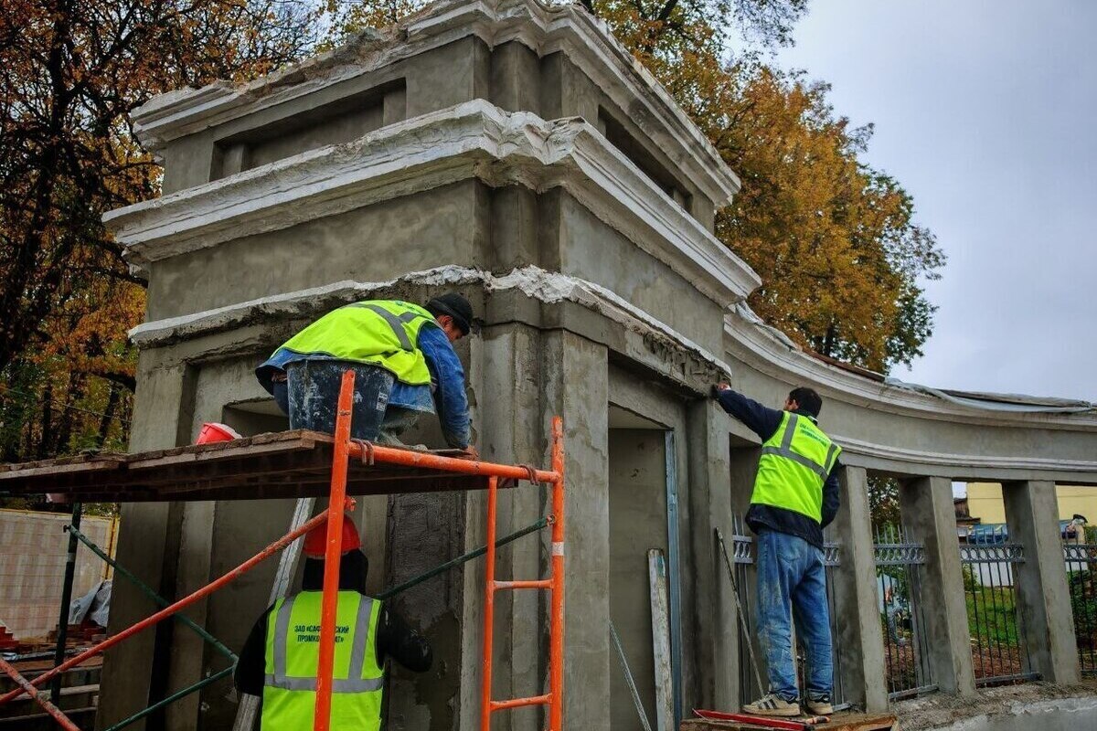 Глава горадминистрации Костромы Алексей Смирнов в своем телеграм канале сообщил о результатах посещения участка реконструкции входной группы Центрального. По словам представителя специализированной подрядной организации «Сафоновский промкомбинат» Алексей Манойленко, работы близятся к завершению: основная их часть уже выполнена, бригады рабочих занимаются отделкой — штукатурят входную группу, а также чистят и красят металлические части конструкции.