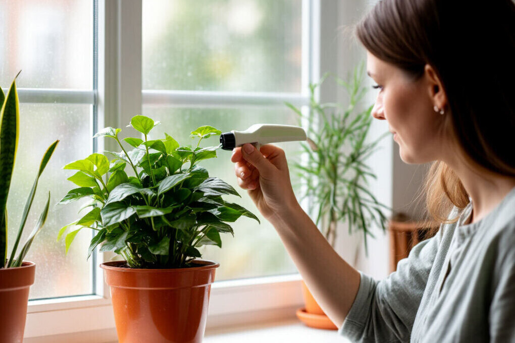 Зимой растения страдают не от холода, а от сухого воздуха. При работающем отоплении влажность в квартирах падает до 25 %, а комфорт для растений начинается с 50–60 %. Отсюда знакомые симптомы: подсыхают кончики листьев, опадают бутоны, появляются паутинные клещи — всё это “синдром батарей”.