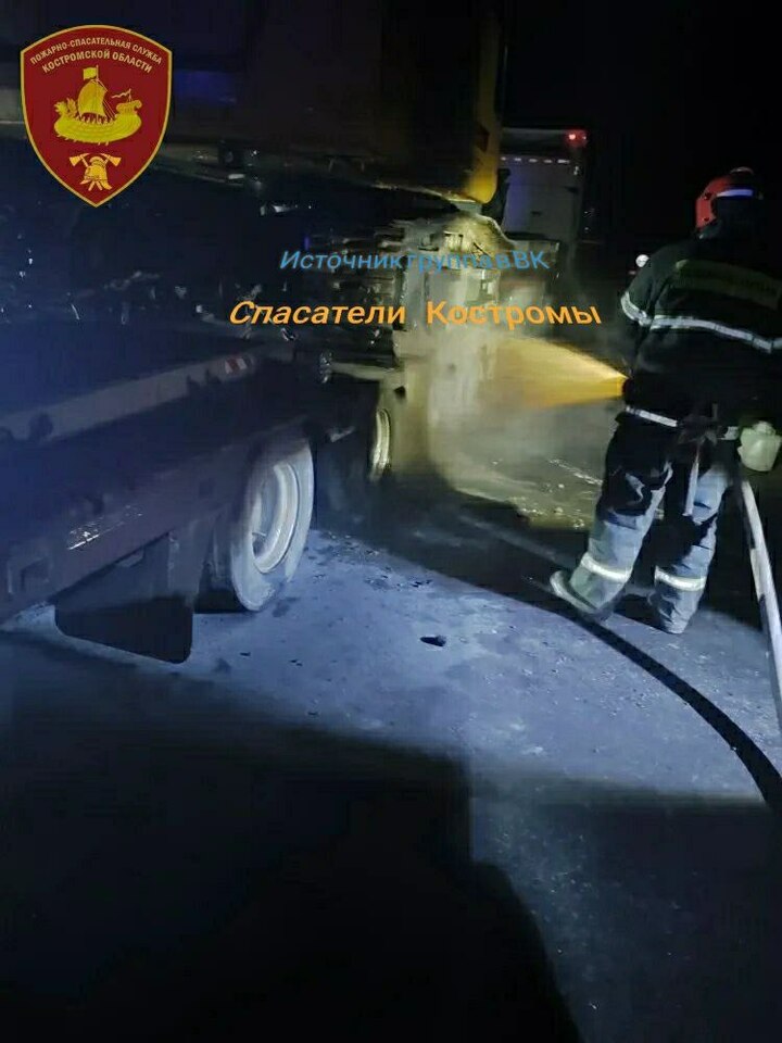 На место своеобразного ЧП прибыли из города Макарьева пожарные экипажи ПСО№2 ОГБУ "Пожарно - спасательная служба". Благодаря слаженным действиям спасателей возгорание было оперативно ликвидировано, а материальный ущерб сведен к минимуму — тягач остался в ремонтопригодном состоянии, а транспортировавшийся им экскаватор не пострадал вообще.