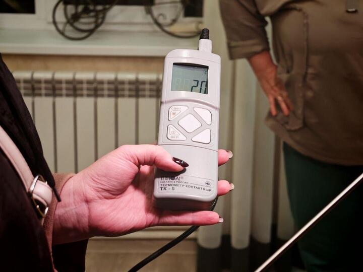 Первый адрес – Мантуровский проезд, 11. Специалисты измеряют температуру теплоносителя в батарее в квартире на первом этаж. Прибор показывает 20 градусов, что является нормой. Прогрев батарей, говорят специалисты, идет равномерно. Такая же картина – на втором этаже. Жители рассказывают, ещё несколько дней назад было холоднее. После обращений специалисты «Городских сетей» провели регулировку на вводе в дом.