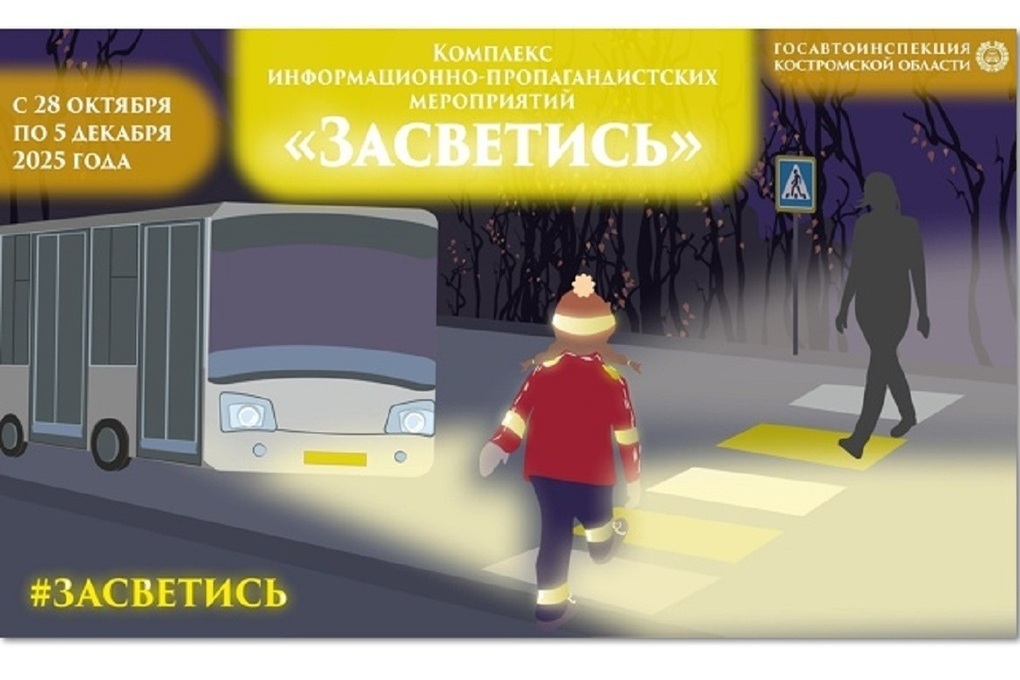 Пресс-служба областного ГИБДД сообщает, что с 28 октября по 5 декабря в Костромской области будет проходить профилактический месячник по обеспечению безопасности пешеходов в темное время суток. Проходить его мероприятия будут под слоганом «Засветись»! Месячник призван привлечь внимание к безопасности костромичей-пешеходов, особенно детей, в условиях короткого светового дня и ухудшения погоды.
