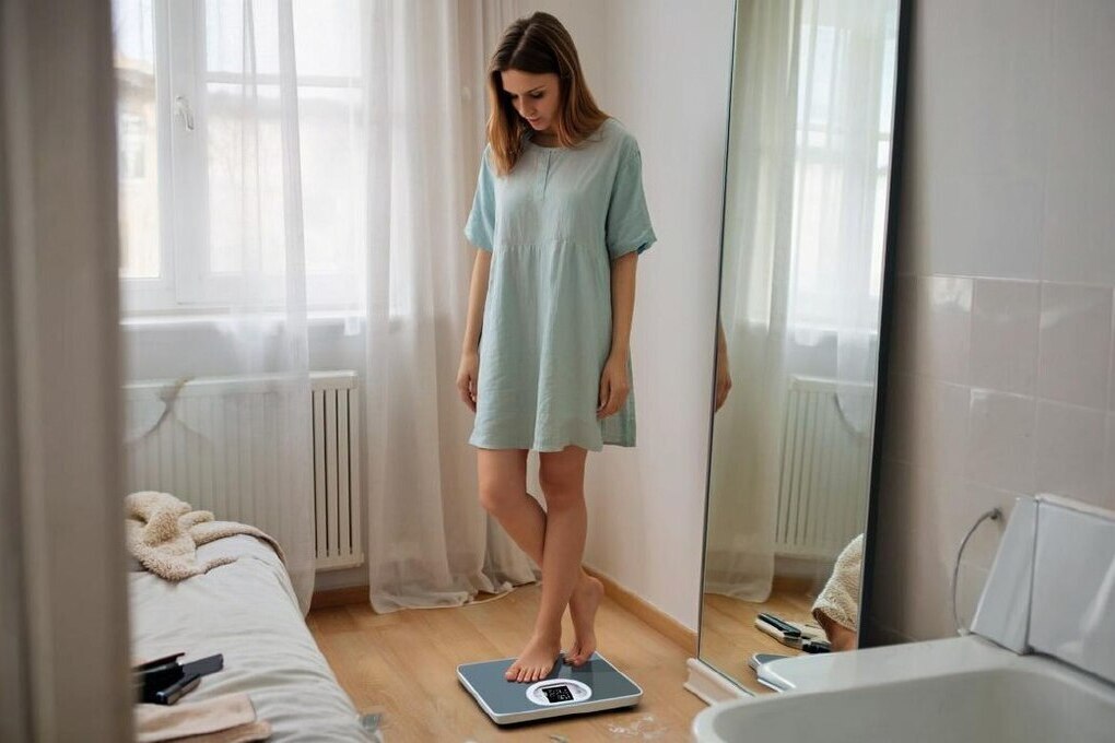 1) Сильные переживания о весе и фигуре, недовольство телом.