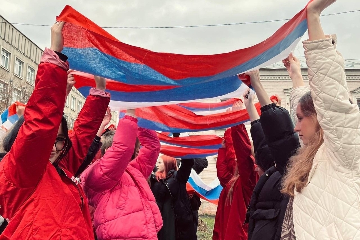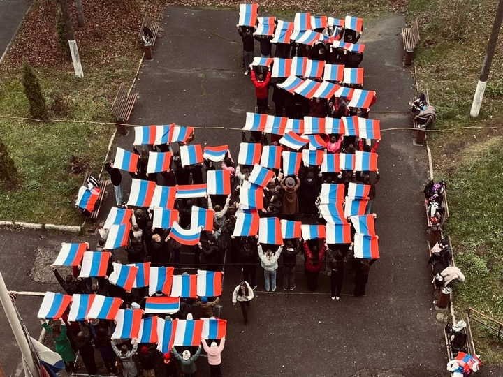 Студенты выстроились в фразу «МЫ-СИЛА», подняв над головами флаги Российской Федерации. Этот праздник символизирует способность нашего народа объединяться перед лицом испытаний, поддерживать друг друга и вместе идти к новым достижениям и успехам.