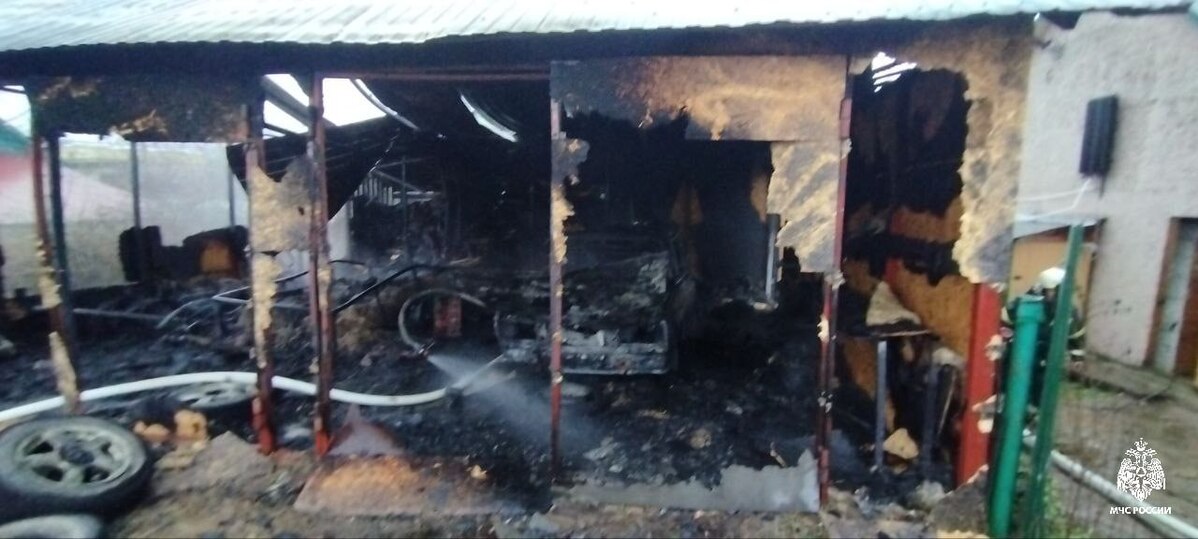 Прибывшие на место пожарные расчеты ликвидировали возгорание за полчаса, но за это время огонь успел повредить кровлю и внутренности гаража — в том числе и автомобиль с прицепом, стоящий внутри Причина и обстоятельства пожара устанавливаются.