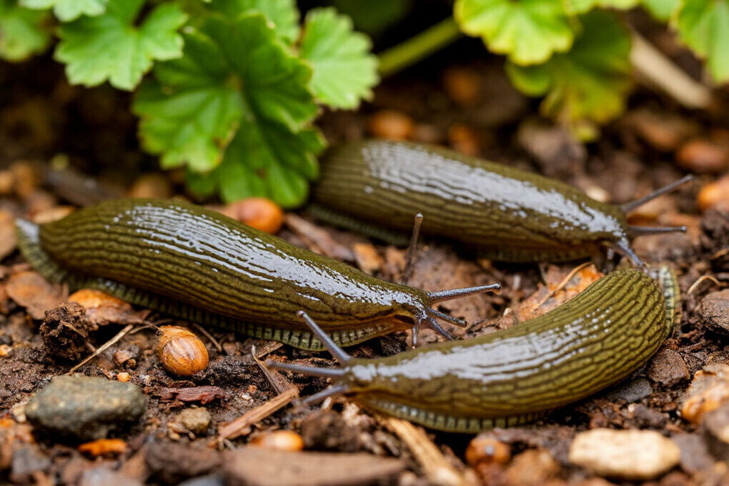 Этот вредитель отличается от привычных нам слизней во-первых размерами (он достигает 15 см. в длину) , а во-вторых всеядностью — он способен сожрать все, что угодно: от листьев и побегов до ягод и даже корнеплодов. Слизни активны в тёплую и влажную погоду, в сумерках и после дождя, о зараженности участка вредителями говорят блестящие дорожки слизи и неровные отверстия на листьях.