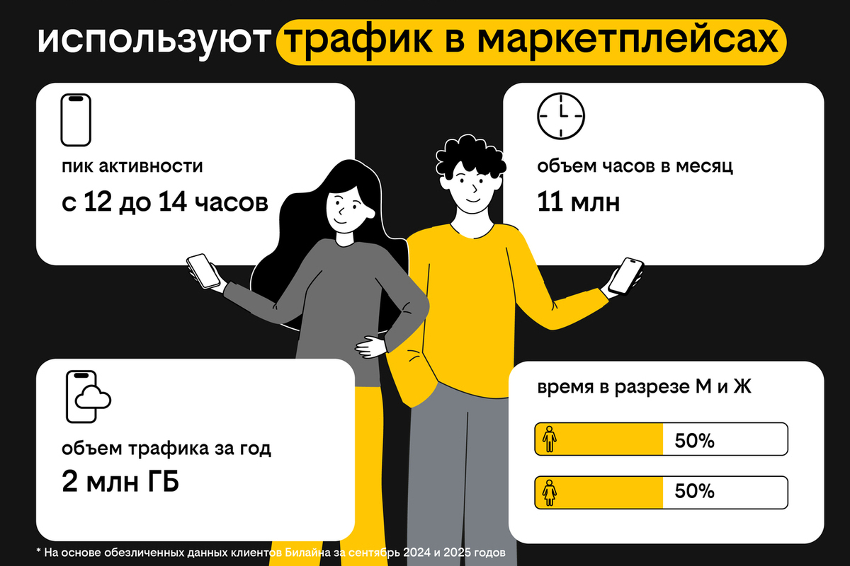 Пользователи Билайна занимаются онлайн-шопингом в приложениях маркетплейсов преимущественно в обеденное время – с 12 до 14 часов. Такие результаты показал анализ обезличенных данных клиентов оператора к черной пятнице. При этом жители Санкт-Петербурга и Ленинградской области вошли в топ-10 регионов, которые больше всего генерируют трафик на маркетплейсах.