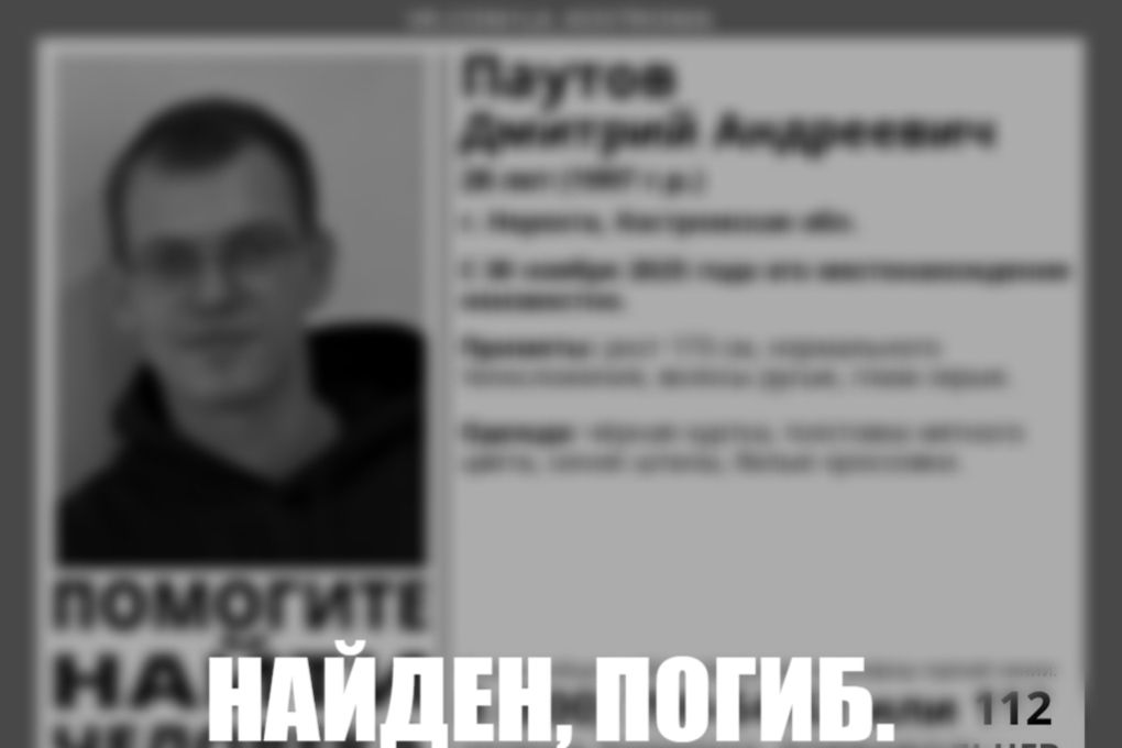 На поиски 28-летнего Дмитрия Паутова были мобилизованы группы добровольцев. В соцсетях разместили ориентировки с приметами костромича.