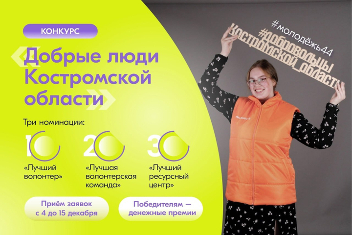 Костромские волонтеры могут принять участие в конкурсе «Добрые люди», который в нашем регионе совместно организуют комитет по делам молодёжи Костромской области, региональный центр развития добровольческой деятельности в Костромской области, молодёжный центр «Кострома»..