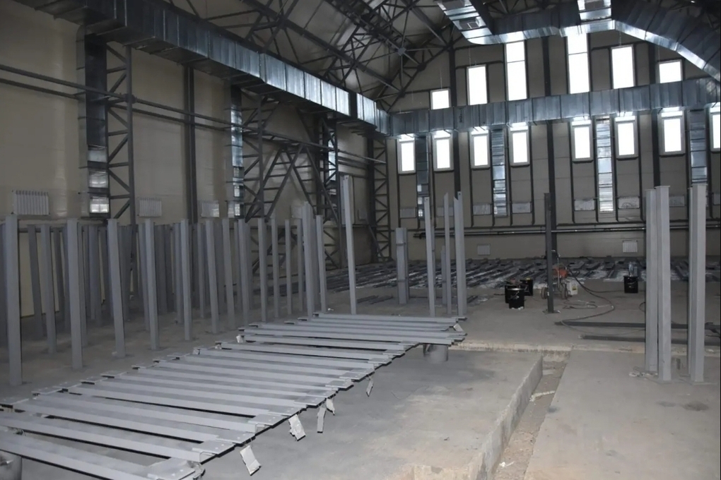 Первая уже выполнила устройство бетонного основания под будущий спортивный объект и проложила внутриплощадочные сети водоснабжения, водоотведения, газоснабжения, отопления. Вторая смонтировала сами стены здания и сейчас занимается монтажом внутренних перегородок и систем вентиляции.