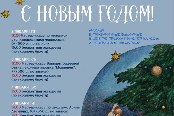 Костромской Центр русского искусства (Площадь Мира, 2) опубликовал расписание мероприятий, которые будут проходить в его стенах в дни новогодних каникул в январе 2026 года. Провести время с пользой для души можно будет: