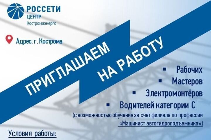 Филиал ПАО «Россети Центр» - «Костромаэнерго» приглашает на работу: